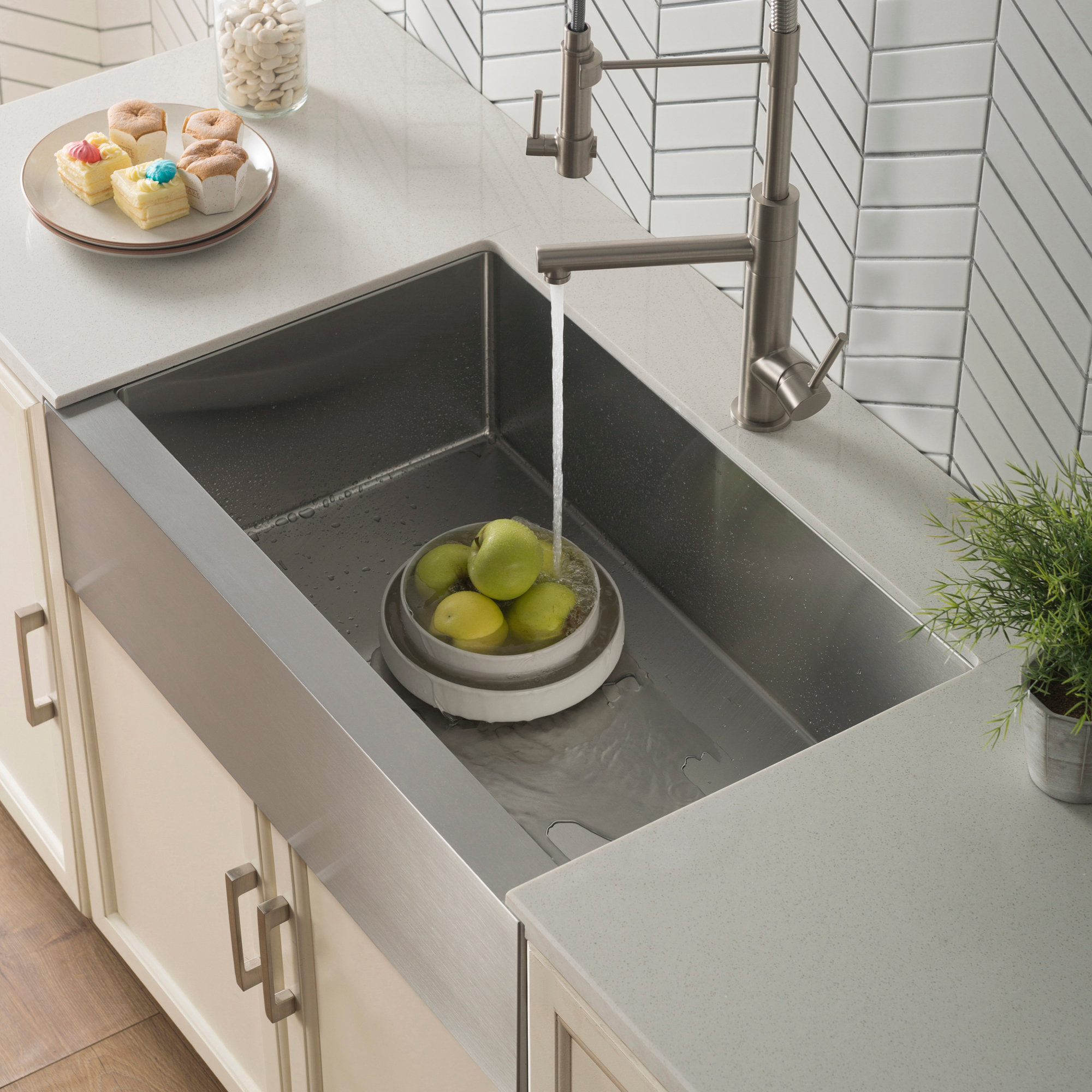 Maret 08, 20211. Kraus KHF203-33 33 inch Farmhouse Apron 60/40 Double Bowl 16 gauge Stainless Steel Kitchen Sink. 2. ZUHNE Prato 30 Inch Single Bowl Farm House. 3. KOHLER K-6489-0 Whitehaven... A farm sink grid can help prevent this by preventing knocking of the finish by your pots and pans. 1. Kraus. known for producing affordable farmhouse sinks, this company combines beauty and... Different farm sinks come in different sizes, which means you have a wider range of sinks to be able to choose from. 2. Kraus KFR1-33GWH Farm Sink. Preview. Product. Rating. Price. Farm Sink Features---NANO Brushed Sink featuresThis sink with